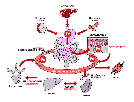 Гемовое железо двухвалентное (Fe²⁺), благодаря чему оно усваивается намного лучше. Можно сказать, что из животной пищи такое железо поступает в уже «готовой» форме. А вот с трехвалентным, негемовым железом (Fe³⁺) организму приходится «повозиться».