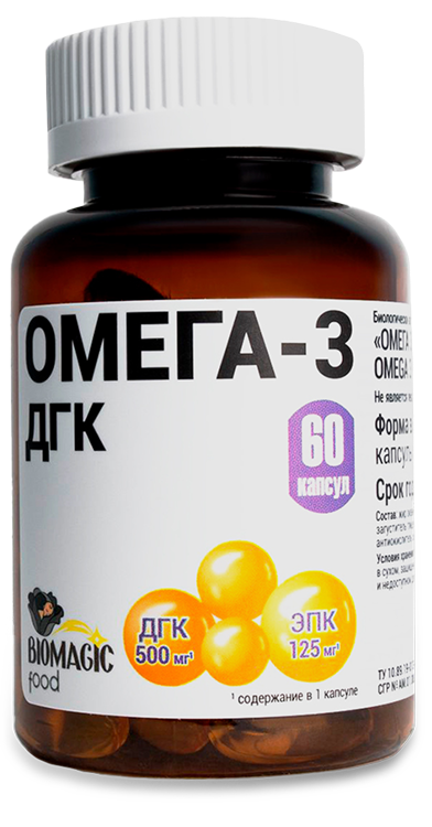 При этом важно внимательно относиться к качеству Омега-3 в составе БАД, из какой рыбы она получена, в капсулах она или жидкая, пахнет ли она рыбой, и сколько в составе ДГК и ЭПК. Один из примеров добавки, созданной с учетом потребностей сердечно-сосудистой системы – Омега-3 БиоМэджик. В одной капсуле содержится соотношение ДГК и ЭПК, полученных из жира океанических рыб, а сама капсула защищает содержимое от окислительных процессов.
