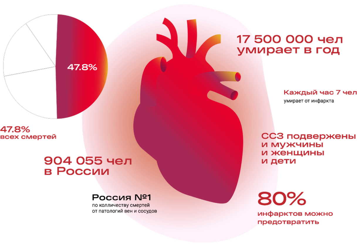 Сердце — единственная мышца в теле человека, которая никогда не отдыхает. В среднем за жизнь через сердце проходит 200 миллионов литров крови. Несмотря на феноменальную выносливость этого органа, сердце подвержено целому ряду заболеваний. Болезни сердца являются абсолютным лидером в списке причин внезапной смерти.