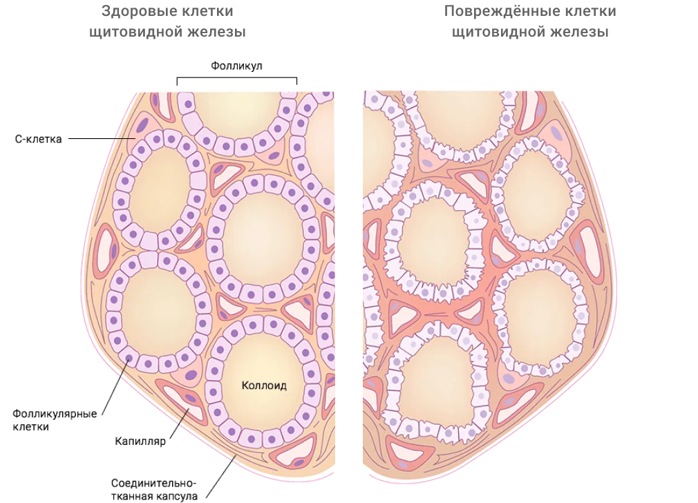 Как первичный гипотиреоз, так и АИТ характеризуются повреждением клеток щитовидной железы и помимо снижения нагрузки на орган за счет щадящей и поддерживающей диеты и приема лекарств и микроэлементов для синтеза гормонов, можно также обеспечить сами клетки органа ресурсом для восстановления. Механизм самовосстановления клеток в нашем организме запускается с помощью особых белковых соединений – пептидов. Они помогают клетке восстановить свою исходную функцию.