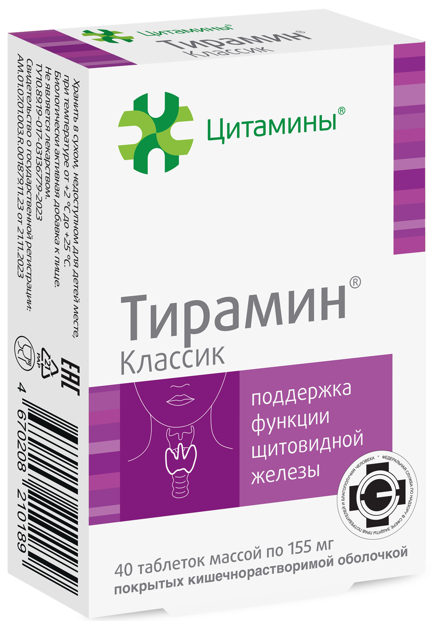 Как и все цитамины, за счет механизма трансцитоза, Тирамин Классик действует целенаправленно на клетки щитовидной железы и способствует нормализации их функции.