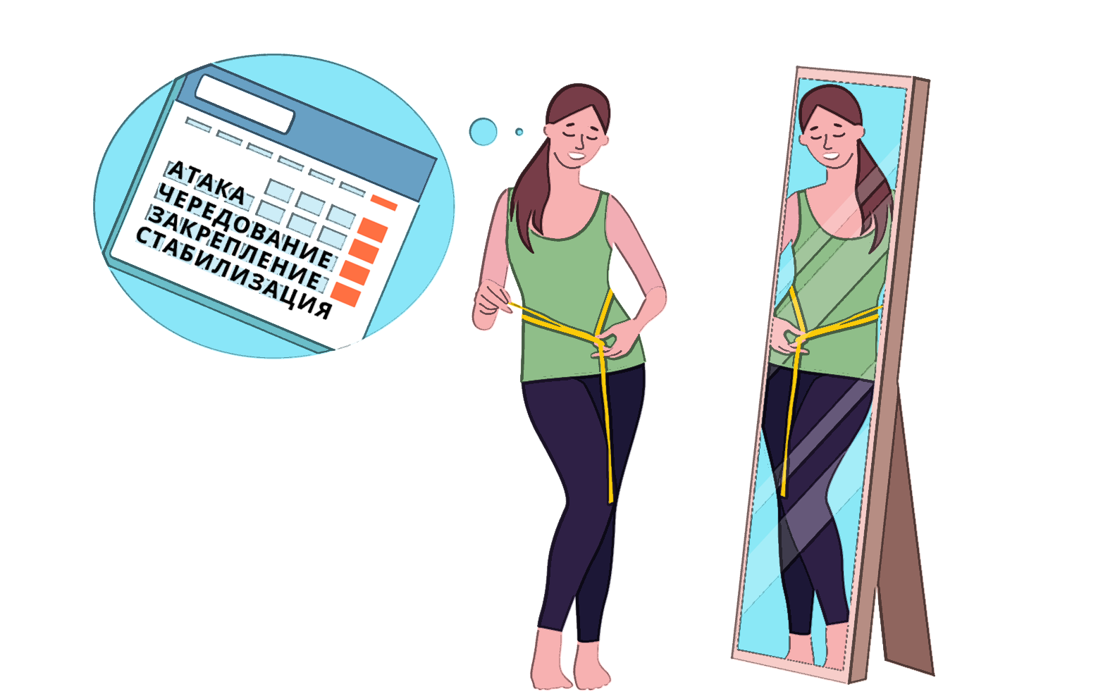 Последний этап стабилизации направлен на поддержание полученного результата. Теперь можно есть все продукты из фазы закрепления, выдерживать хотя бы 1 белковый день в неделю, ходить минимум 20–30 минут в день, съедать 30 граммов отрубей в сутки и пить достаточно воды.