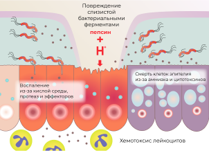 Кислотность часто повышается из-за неправильного питания, злоупотребления острой, жирной или кислой пищей и вредных привычек: курения, частого употребления кофе или алкоголя. Выработка кислоты также может увеличиться из-за стресса или нервного напряжения. Но человек это почувствует либо при совсем уж агрессивном воздействии провоцирующего фактора, либо при условии, что в работе ЖКТ есть дополнительные проблемы. Так при язве или гастрите и уже имеющемся очаге воспаления на слизистой повышение кислотности будет ощущаться очень чувствительно. Зачастую речь идет о замкнутом круге: Helicobacter pylori — бактерия, которая зачастую вызывает воспаление слизистой желудка и провоцирует развитие язвы и гастрита, одновременно повышает кислотность.