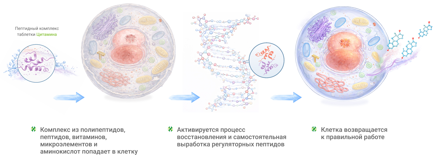 Восстановление при помощи пептидов работает не только для волос, но и для всех клеток нашего тела. В рамках комплексной терапии можно также уделить внимание пептидным средствам для поддержки сосудистого русла. В этом случае речь идет уже не о местных, а о системных средствах. Так, активный комплекс пептидного биорегулятора сосудов Вазаламин Классик обеспечивает клетки сосудов сигналом и необходимым ресурсом для восстановления, способствуя улучшению микроциркуляции крови.