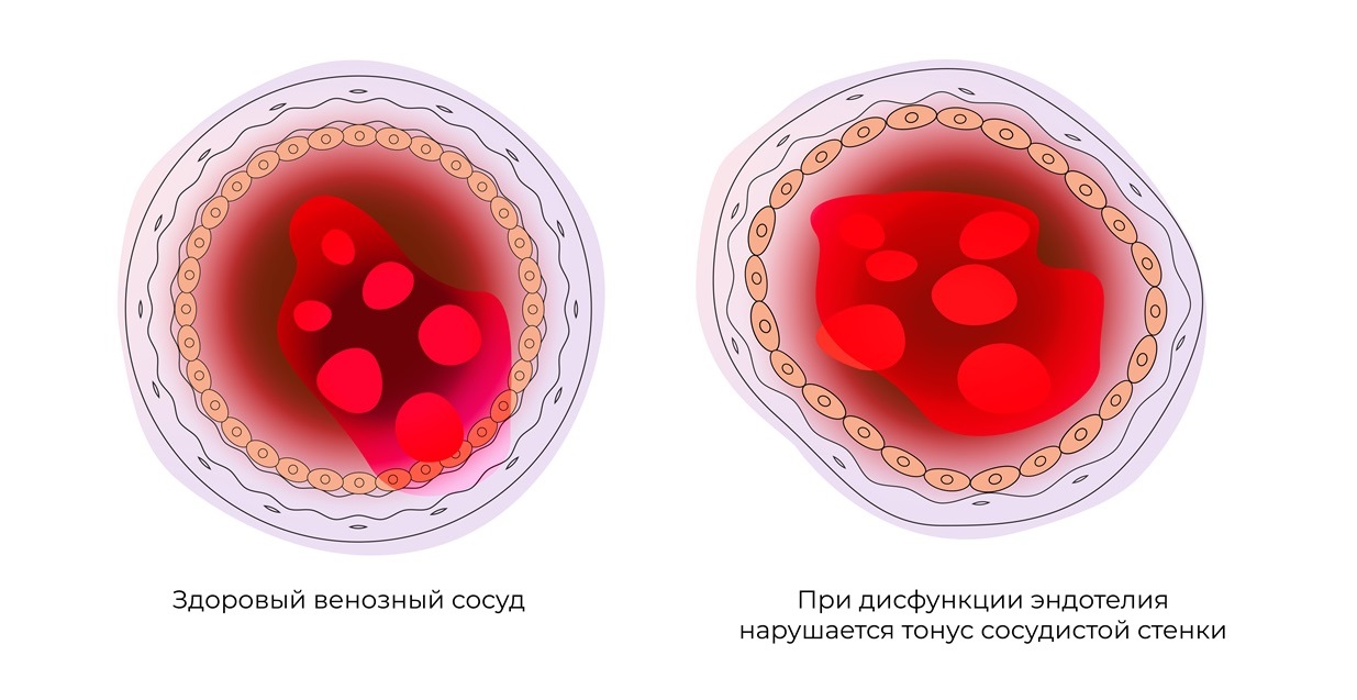 Сосуды — магистрали, по которым движется кровь. Их стенки активно участвуют в регуляции обмена веществ, пропуская и удерживая жидкость. Когда венозная система работает плохо (например, при варикозной болезни или хронической венозной недостаточности), кровь застаивается в нижних конечностях, стенки сосудов теряют тонус. В результате жидкость выходит в ткани, формируя локальные отеки.
