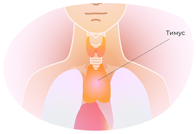 Т-клетки иммунной системы образуются в костном мозге, после чего мигрируют в тимус (вилочковую железу) и там окончательно дозревают. При повышении концентрации глюкокортикоидов тимус уменьшается в размерах — и формирование иммунных клеток нарушается.