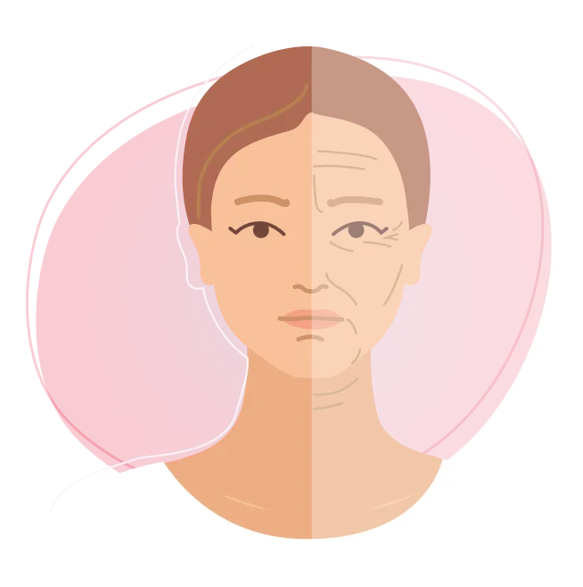 Старение всех клеток в организме характеризуется набором основных биомаркеров: генетические изменения, нарушение метаболизма клеток, нарушение межклеточного взаимодействия. Зачастую естественное снижение функции клеток кожи усугубляется ухудшением микроциркуляции крови из-за ослабления клеток сосудов.