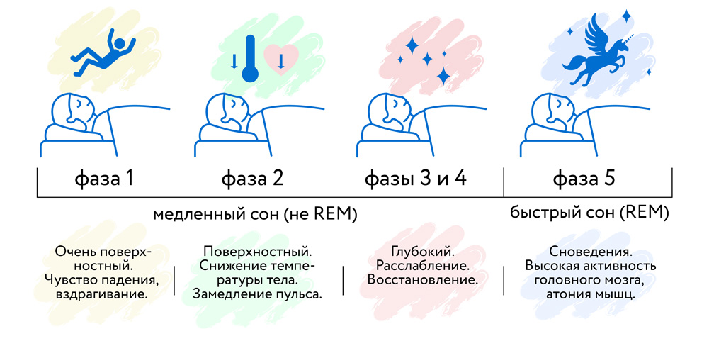 Для того чтобы сон был качественным, приносил отдых и восстановление, организм должен последовательно проходить через все фазы и стадии в течение цикла сна. В первую очередь это связано с активностью головного мозга, который на разных стадиях вырабатывает разные гормоны и нейромедиаторы (вещества, с помощью которых происходит передача нервных импульсов), обеспечивающие оптимальное расслабление и питание тканей.