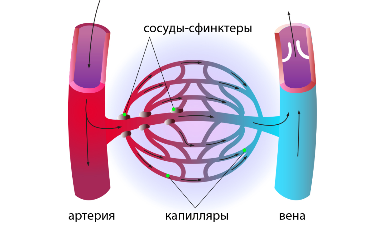 А капилляры — это мельчайшие сосуды, связывающие между собой артерии и вены.