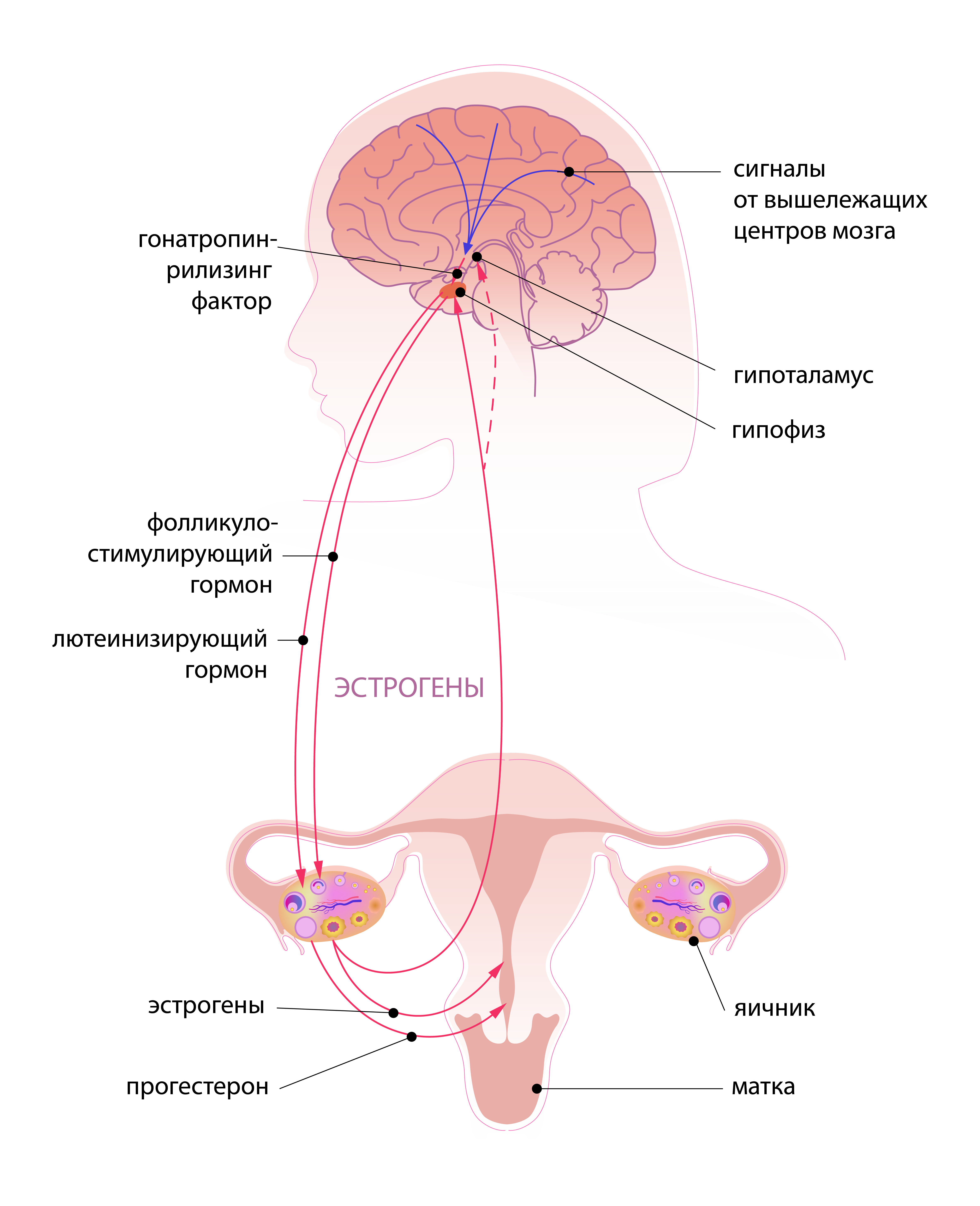 В результате слаженной работы гипоталамуса, гипофиза, яичников и эндометрия в течении нескольких десятилетий регулярно повторяется менструальный цикл и сохраняется возможность забеременеть.